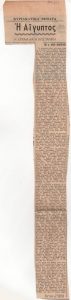 A clipping from the newspaper “Eleftheros Cosmos”, dated July 2, 1977, featuring a review of Fotis Kontoglou’s literary work. The article discusses his publications and provides commentary on his writings and his artwork.