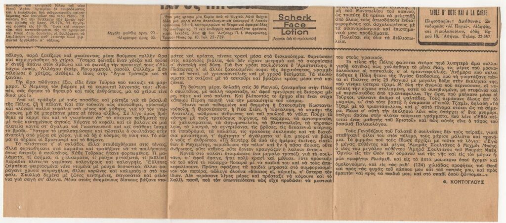 A clipping from the newspaper “Proia”, featuring an article by Fotis Kontoglou.