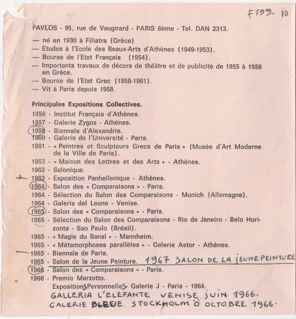 Spiteri-Veropoulou Ioanna (1920 - 2000) ; Vafeiadis Markos (1906 - 1992) ; Raftopoulou Bella (1902 - 1992) ; Pavlos (Dionyssopoulos) (1930 - 2019) ; Christoforou John (1921 - 2014) ; Fassianos Alekos (1935 - 2022) ; Μανώλης Καλλιγιάννης ; Simossi Gabriela (1926 - 1999) ; Tsarouchis Yannis (1910 - 1989) ; Tsoclis Costas (1930) ; (Panagopoulos) Daniel (1924 - 2008) ; Koulentianos Kostas (1918 - 1995) ; Vyzantios Ntikos (1924 - 2007) ; Tzolaki Rena (1930) ; Angelopoulos Aristomenis (1900 - 1990) ; Philolaos (Tloupas) (1923 - 2010) ; Fokas Yannis (1951) ; Κώστας Χαραλαμπίδης (1946) ; Pierrakos Alkis (1920 - 2017) ; Sperantzas Vassilis (1938) ; Karavouzis Sarantis (1938 - 2011) ; Yulika Lakeridou (1940) ; Kindynis Anna (1914 - 2003) ; Kriezi Tita (1930 - 2021) ; Lyberaki Aglaia (1923 - 1985) ; Κώστας Μακρής ; Maltezos Yannis (1915 - 1987) ; Molfesis Iasson (1925 - 2009) ; Κωνσταντίνος Μόραλης ; Bouteas Yannis (1941 - 2026) ; Xenakis Constantinos (1931 - 2020) ; Pastra Nausica (1921 - 2011) ; Gisele Πράσινου ; Tsekoura, Vassiliki (1947) ; Πάνος Ελευθερίου ; Δημήτρης Ράτσικας (1946) ; Νίκος Δαμιανάκης (1920 - 2005) ; Pantelias Miltos (1954) ; Νίκος Τσιώτης ; Εριέττα Βορδώνη (1959) ; Κωνσταντίνος Γιαννικούρης