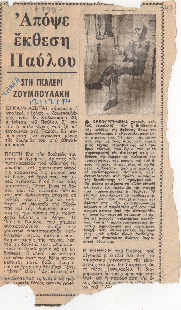 Pavlos (Dionyssopoulos) (1930 - 2019) ; Feloukatzi Ira (20th century) ; Takis (Vassilakis Panayiotis) (1925 - 2019) ; Β. Λιάπας ; Ρένος Ξείππας