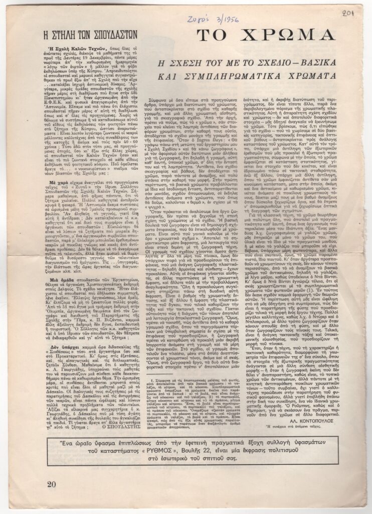 Andreou Kostas (1917 - 2007) ; Fatouros Dimitris (1928 - 2020) ; Spiteri-Veropoulou Ioanna (1920 - 2000) ; Eugène Delacroix (1798 - 1863) ; Touyas Giorgos (1922 - 1994) ; Simossi Gabriela (1926 - 1999) ; Tsoclis Costas (1930) ; Sklavos Yerassimos (1927 - 1967) ; Άγγελος Αγγελόπουλος (1904 - 1995) ; Kontopoulos Alekos (1904 - 1975) ; Mylonas Alex (1923 - 2016) ; Vyzantios Ntikos (1924 - 2007) ; Berto Lardera ; Valsamis Kostas (1908 - 2003) ; Gaitis Yannis (1923 - 1984) ; Le Corbusier (1887 - 1965) ; Georges Mathieu (1921 - 2012) ; Theodoros (Papadimitriou) (1931 - 2018) ; Takis (Vassilakis Panayiotis) (1925 - 2019) ; Victor Vasarely ; Philolaos (Tloupas) (1923 - 2010) ; Kessanlis Nikos (1930 - 2004) ; Kriezi Tita (1930 - 2021) ; Lyberaki Aglaia (1923 - 1985) ; Maltezos Yannis (1915 - 1987) ; Molfesis Iasson (1925 - 2009) ; Paniaras Kostas (1934 - 2014) ; Karras Kostas (1936 - 2012) ; Γιώργος Βαφειάδης