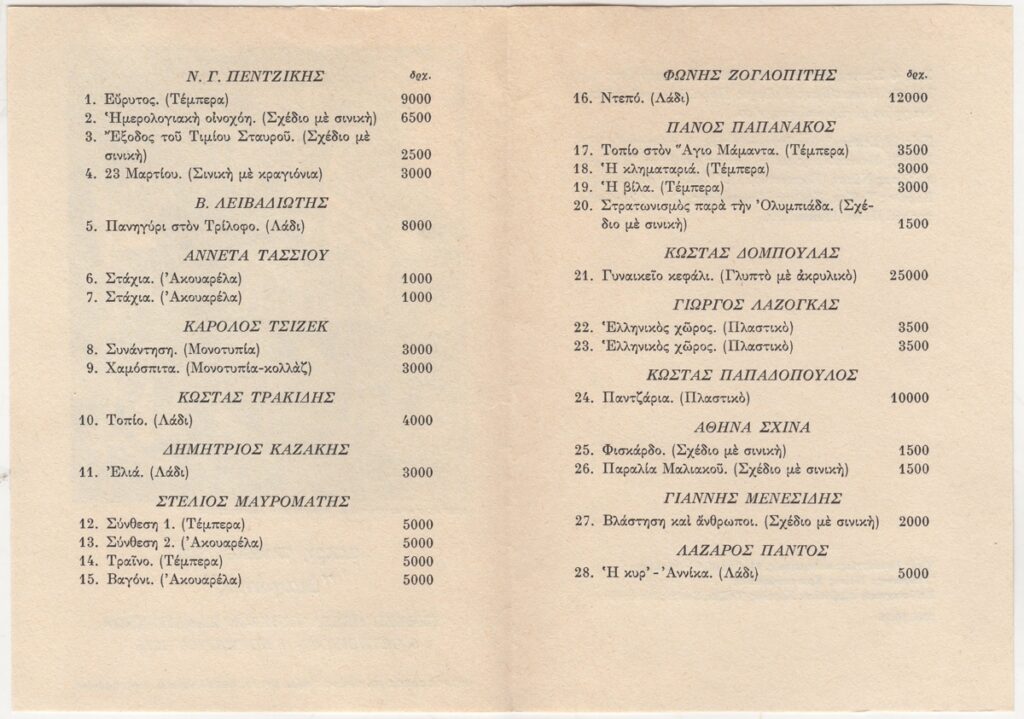 Spiteri-Veropoulou Ioanna (1920 - 2000) ; Gerolymatos Dionysios (1938 - 2020) ; Χρήστος Γεωργίου ; Kalakallas Giorgos (1938 - 2021) ; Ledaki Maria (1932) ; Λάζαρος Παούρης (1950) ; Κώστας Πολυχρονόπουλος ; Κώστας Δομπούλας ; Elvio Becheroni (1934 - 2000) ; Katapodis Spyros (1933 - 1998) ; Berlini ; Νίκος Παρασκευάς ; Χαράλαμπος Δαραδήμος ; Βασίλης Δωρόπουλος ; Τάσος Μουζάκης