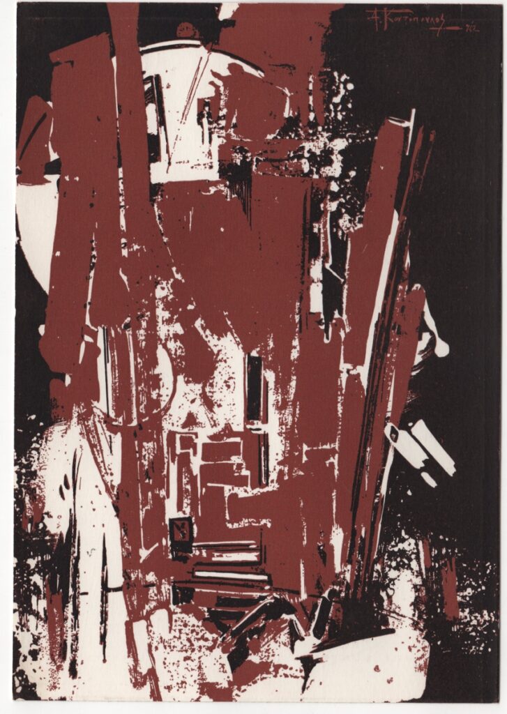 Andreou Kostas (1917 - 2007) ; Fatouros Dimitris (1928 - 2020) ; Spiteri-Veropoulou Ioanna (1920 - 2000) ; Eugène Delacroix (1798 - 1863) ; Touyas Giorgos (1922 - 1994) ; Simossi Gabriela (1926 - 1999) ; Tsoclis Costas (1930) ; Sklavos Yerassimos (1927 - 1967) ; Άγγελος Αγγελόπουλος (1904 - 1995) ; Kontopoulos Alekos (1904 - 1975) ; Mylonas Alex (1923 - 2016) ; Vyzantios Ntikos (1924 - 2007) ; Berto Lardera ; Valsamis Kostas (1908 - 2003) ; Gaitis Yannis (1923 - 1984) ; Le Corbusier (1887 - 1965) ; Georges Mathieu (1921 - 2012) ; Theodoros (Papadimitriou) (1931 - 2018) ; Takis (Vassilakis Panayiotis) (1925 - 2019) ; Victor Vasarely ; Philolaos (Tloupas) (1923 - 2010) ; Kessanlis Nikos (1930 - 2004) ; Kriezi Tita (1930 - 2021) ; Lyberaki Aglaia (1923 - 1985) ; Maltezos Yannis (1915 - 1987) ; Molfesis Iasson (1925 - 2009) ; Paniaras Kostas (1934 - 2014) ; Karras Kostas (1936 - 2012) ; Γιώργος Βαφειάδης
