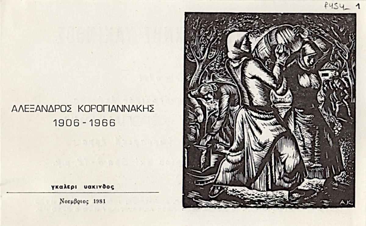 Invitation to the retrospective exhibition of Alexandros Koroyiannakis at the “Hyacinth” Art Gallery in Athens.