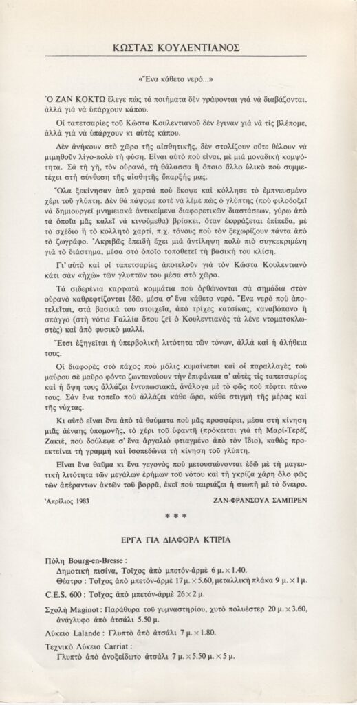Spiteri-Veropoulou Ioanna (1920 - 2000) ; Kyriakos Rokos (1945) ; Koulentianos Kostas (1918 - 1995) ; Takis (Vassilakis Panayiotis) (1925 - 2019) ; Papagiannis Theodoros (1942) ; Loucopoulos, Clearchos (1906 - 1995) ; Armakolas Dimitris (1939 - 2009) ; Nikolaidis Giorgos (1924 - 2001) ; Fanakidis Apostolos (1945)