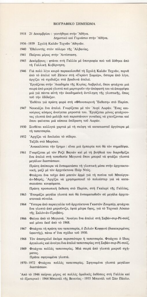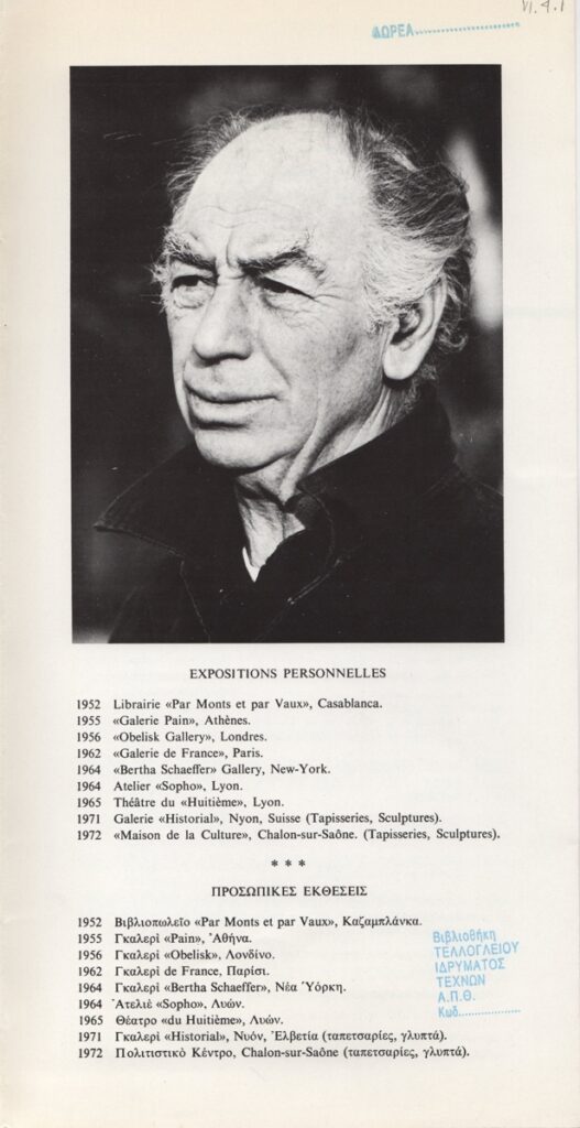 Spiteri-Veropoulou Ioanna (1920 - 2000) ; Vafeiadis Markos (1906 - 1992) ; Raftopoulou Bella (1902 - 1992) ; Pavlos (Dionyssopoulos) (1930 - 2019) ; Christoforou John (1921 - 2014) ; Fassianos Alekos (1935 - 2022) ; Μανώλης Καλλιγιάννης ; Simossi Gabriela (1926 - 1999) ; Tsarouchis Yannis (1910 - 1989) ; Tsoclis Costas (1930) ; (Panagopoulos) Daniel (1924 - 2008) ; Koulentianos Kostas (1918 - 1995) ; Vyzantios Ntikos (1924 - 2007) ; Tzolaki Rena (1930) ; Angelopoulos Aristomenis (1900 - 1990) ; Philolaos (Tloupas) (1923 - 2010) ; Fokas Yannis (1951) ; Κώστας Χαραλαμπίδης (1946) ; Pierrakos Alkis (1920 - 2017) ; Sperantzas Vassilis (1938) ; Karavouzis Sarantis (1938 - 2011) ; Yulika Lakeridou (1940) ; Kindynis Anna (1914 - 2003) ; Kriezi Tita (1930 - 2021) ; Lyberaki Aglaia (1923 - 1985) ; Κώστας Μακρής ; Maltezos Yannis (1915 - 1987) ; Molfesis Iasson (1925 - 2009) ; Κωνσταντίνος Μόραλης ; Bouteas Yannis (1941 - 2026) ; Xenakis Constantinos (1931 - 2020) ; Pastra Nausica (1921 - 2011) ; Gisele Πράσινου ; Tsekoura, Vassiliki (1947) ; Πάνος Ελευθερίου ; Δημήτρης Ράτσικας (1946) ; Νίκος Δαμιανάκης (1920 - 2005) ; Pantelias Miltos (1954) ; Νίκος Τσιώτης ; Εριέττα Βορδώνη (1959) ; Κωνσταντίνος Γιαννικούρης