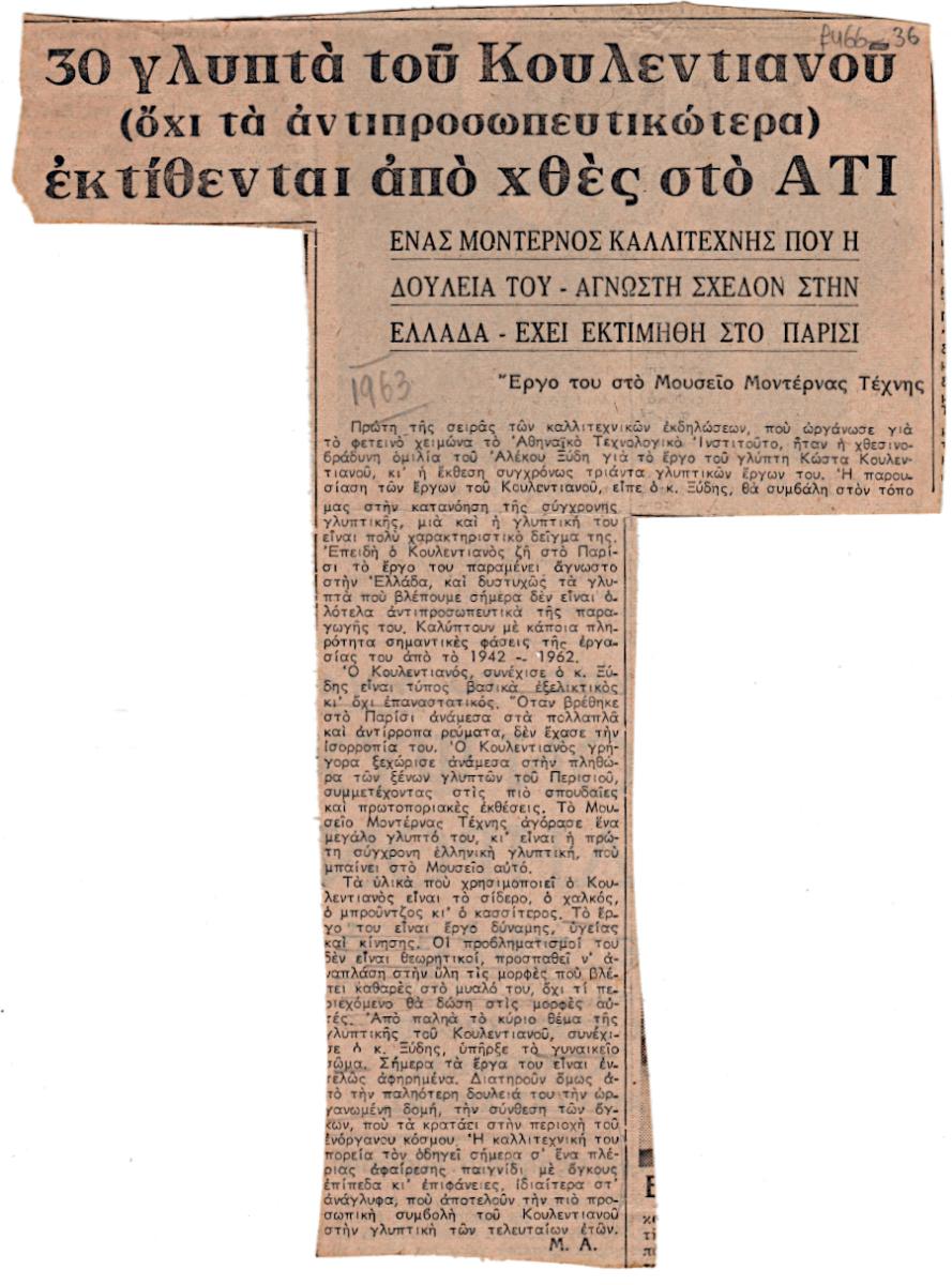 Spiteri-Veropoulou Ioanna (1920 - 2000) ; Vafeiadis Markos (1906 - 1992) ; Raftopoulou Bella (1902 - 1992) ; Pavlos (Dionyssopoulos) (1930 - 2019) ; Christoforou John (1921 - 2014) ; Fassianos Alekos (1935 - 2022) ; Μανώλης Καλλιγιάννης ; Simossi Gabriela (1926 - 1999) ; Tsarouchis Yannis (1910 - 1989) ; Tsoclis Costas (1930) ; (Panagopoulos) Daniel (1924 - 2008) ; Kostas Koulentianos (1918 - 1995) ; Vyzantios Ntikos (1924 - 2007) ; Tzolaki Rena (1930) ; Angelopoulos Aristomenis (1900 - 1990) ; Philolaos (Tloupas) (1923 - 2010) ; Fokas Yannis (1951) ; Κώστας Χαραλαμπίδης (1946) ; Pierrakos Alkis (1920 - 2017) ; Sperantzas Vassilis (1938) ; Karavouzis Sarantis (1938 - 2011) ; Yulika Lakeridou (1940) ; Kindynis Anna (1914 - 2003) ; Kriezi Tita (1930 - 2021) ; Lyberaki Aglaia (1923 - 1985) ; Κώστας Μακρής ; Maltezos Yannis (1915 - 1987) ; Molfesis Iasson (1925 - 2009) ; Κωνσταντίνος Μόραλης ; Bouteas Yannis (1941 - 2026) ; Xenakis Constantinos (1931 - 2020) ; Nausica Pastra (1921 - 2011) ; Gisele Πράσινου ; Tsekoura, Vassiliki (1947) ; Πάνος Ελευθερίου ; Δημήτρης Ράτσικας (1946) ; Νίκος Δαμιανάκης (1920 - 2005) ; Pantelias Miltos (1954) ; Νίκος Τσιώτης ; Εριέττα Βορδώνη (1959) ; Κωνσταντίνος Γιαννικούρης