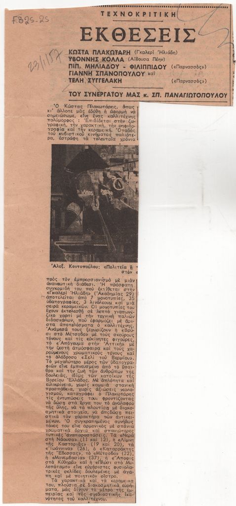 Spiteris Tonis (1910 - 1986) ; Tompros Michalis (1889 - 1974) ; Michel Conil-Lacoste ; Prokopiou Angelos G. (1909 - 1967) ; Moulin Raoul-Jean (1934 - 2014) ; Chatzidakis Manolis (1909 - 1998) ; Hoctin, Luce (1916 - 2015) ; Eleni Vakalo (1921 - 2001) ; Σπύρος Παναγιωτόπουλος (1894 - 1987) ; Matsas Nestoras (1935 - 2012) ; Zongopoulos George (1903 - 2004) ; Mylonas Alex (1923 - 2016) ; Έλλη Κ. Πολίτη ; Elgar Frank (1899 - 1978) ; Charles Sriber