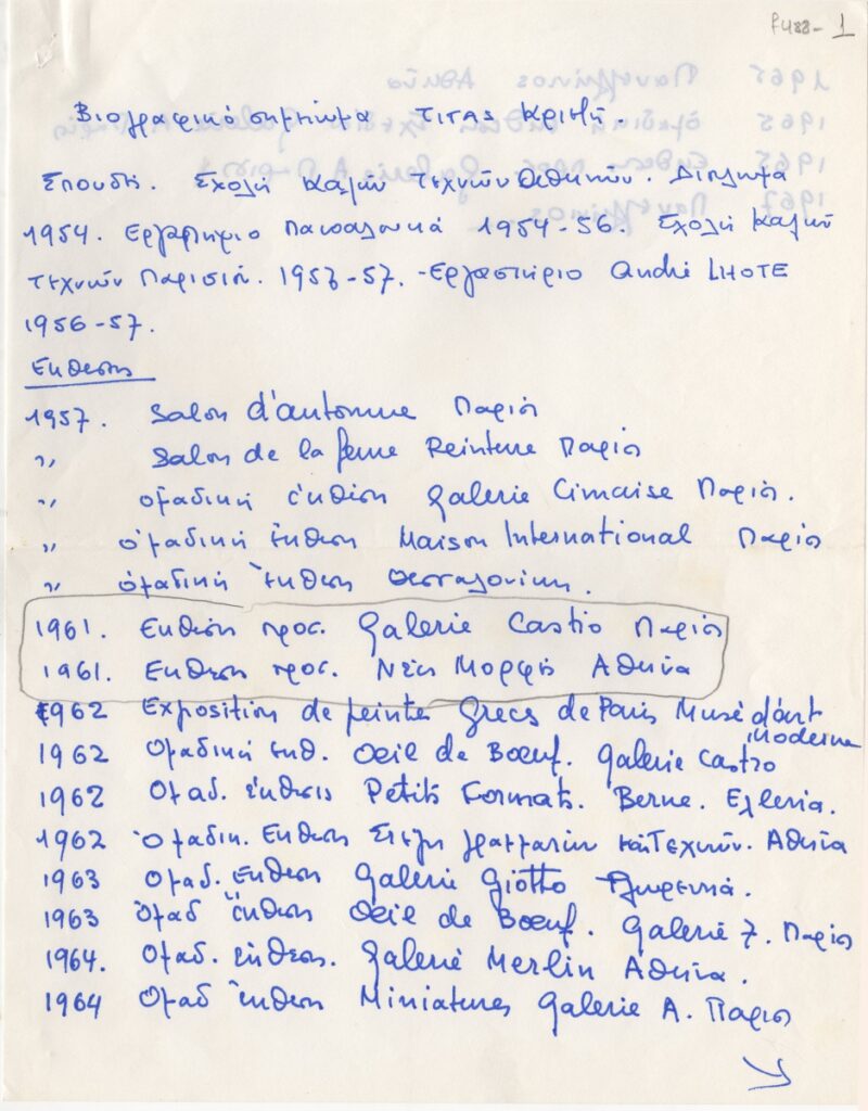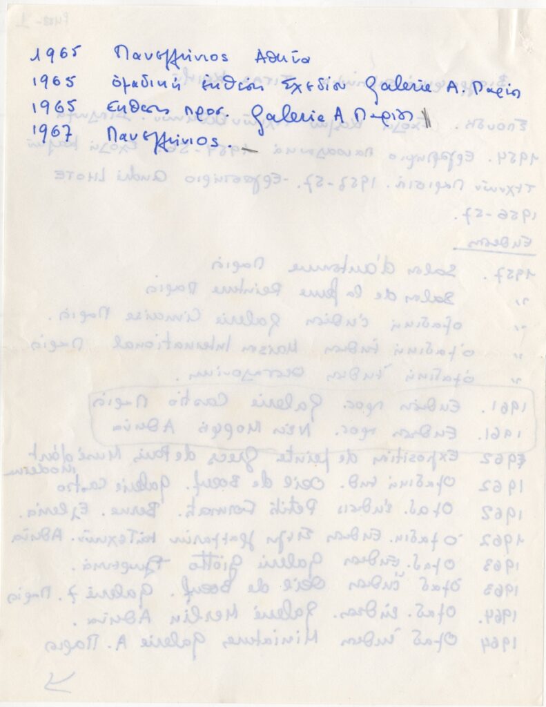 Spiteri-Veropoulou Ioanna (1920 - 2000) ; Vafeiadis Markos (1906 - 1992) ; Raftopoulou Bella (1902 - 1992) ; Pavlos (Dionyssopoulos) (1930 - 2019) ; Christoforou John (1921 - 2014) ; Fassianos Alekos (1935 - 2022) ; Μανώλης Καλλιγιάννης ; Simossi Gabriela (1926 - 1999) ; Tsarouchis Yannis (1910 - 1989) ; Tsoclis Costas (1930) ; (Panagopoulos) Daniel (1924 - 2008) ; Kostas Koulentianos (1918 - 1995) ; Vyzantios Ntikos (1924 - 2007) ; Tzolaki Rena (1930) ; Angelopoulos Aristomenis (1900 - 1990) ; Philolaos (Tloupas) (1923 - 2010) ; Fokas Yannis (1951) ; Κώστας Χαραλαμπίδης (1946) ; Pierrakos Alkis (1920 - 2017) ; Sperantzas Vassilis (1938) ; Karavouzis Sarantis (1938 - 2011) ; Yulika Lakeridou (1940) ; Kindynis Anna (1914 - 2003) ; Kriezi Tita (1930 - 2021) ; Lyberaki Aglaia (1923 - 1985) ; Κώστας Μακρής ; Maltezos Yannis (1915 - 1987) ; Molfesis Iasson (1925 - 2009) ; Κωνσταντίνος Μόραλης ; Bouteas Yannis (1941 - 2026) ; Xenakis Constantinos (1931 - 2020) ; Pastra Nausica (1921 - 2011) ; Gisele Πράσινου ; Tsekoura, Vassiliki (1947) ; Πάνος Ελευθερίου ; Δημήτρης Ράτσικας (1946) ; Νίκος Δαμιανάκης (1920 - 2005) ; Pantelias Miltos (1954) ; Νίκος Τσιώτης ; Εριέττα Βορδώνη (1959) ; Κωνσταντίνος Γιαννικούρης