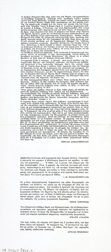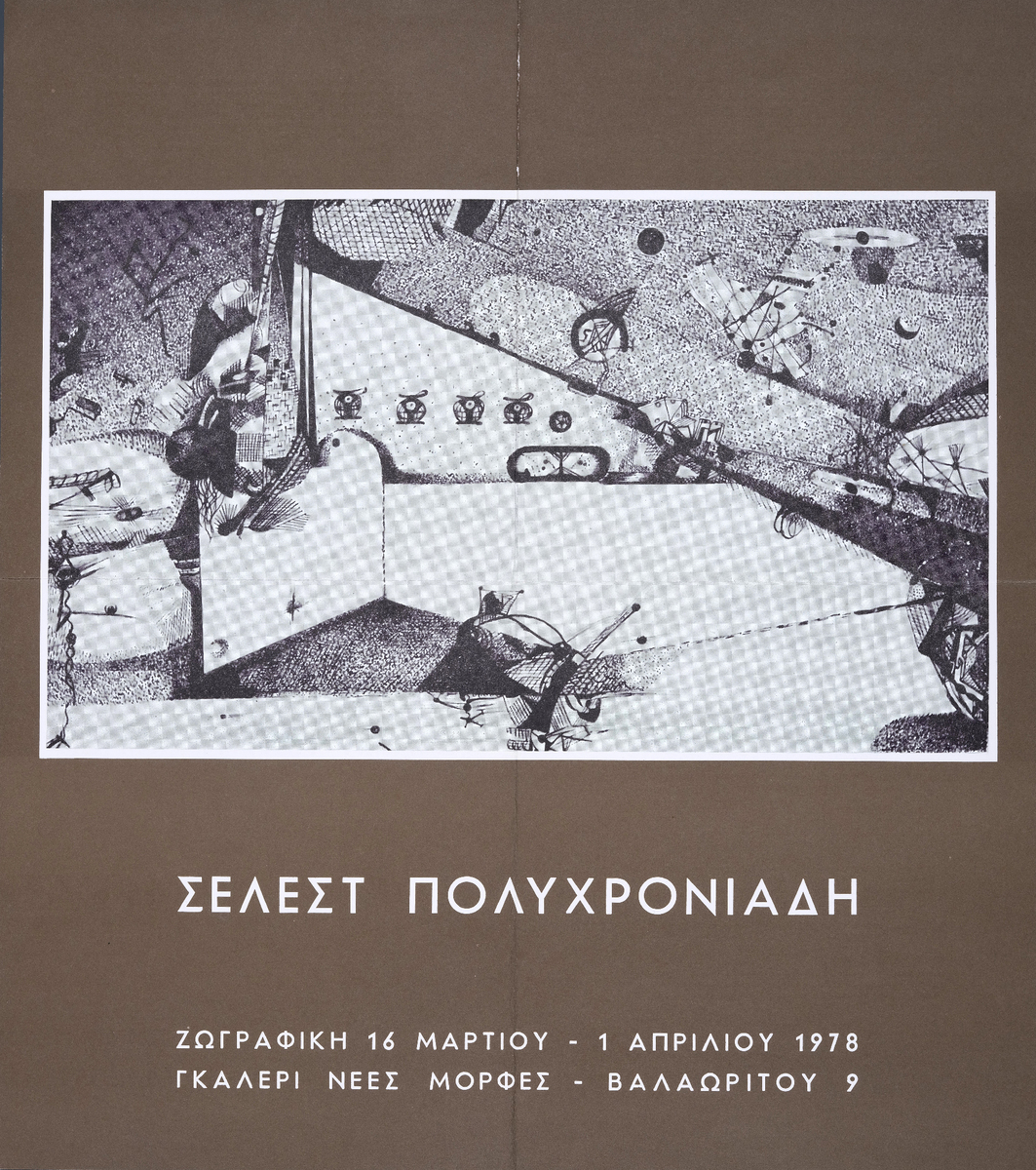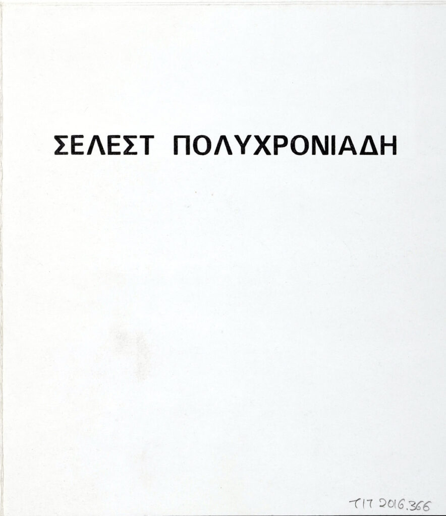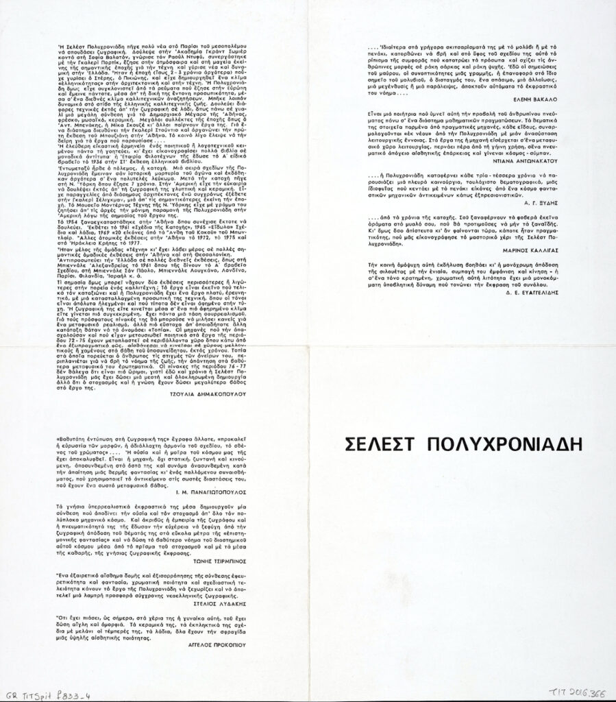 Poster for a solo exhibition by Celeste Polychroniadi, at the “Nees Morfes’ Gallery in Athens.
