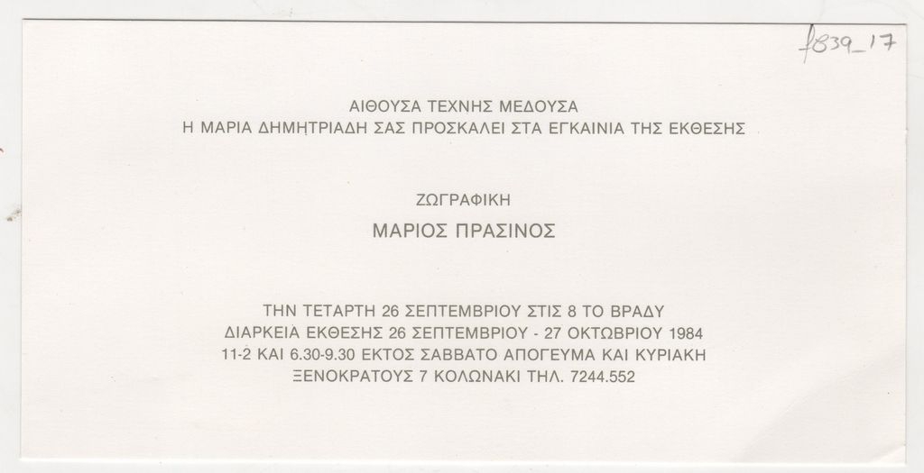 Spiliadi Veatriki (1936 - 2023) ; Ευθύμιος Μητρόπουλος (ΜΙΤ) (1939) ; Prassinos Marios (1916 - 1985) ; Saint Phalle Niki de (1930 - 2002)