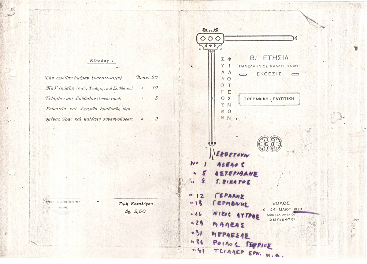 Spiteri-Veropoulou Ioanna (1920 - 2000) ; Vafeiadis Markos (1906 - 1992) ; Raftopoulou, Bella (1902 - 1992) ; Pavlos (Dionyssopoulos) (1930 - 2019) ; Christoforou, John (1921 - 2014) ; Fassianos Alekos (1935 - 2022) ; Μανώλης Καλλιγιάννης ; Γαβριέλλα Σίμωσι (1926 - 1999) ; Tsarouchis Yiannis (1910 - 1989) ; Tsoclis Costas (1930) ; Danil (Panagopoulos) (1924 - 2008) ; Koulentianos Kostas (1918 - 1995) ; Vyzantios Ntikos (1924 - 2007) ; Tzolaki, Rena (1930) ; Angelopoulos Aristomenes (1900 - 1990) ; Philolaos (1923 - 2010) ; Fokas Yannis (1951) ; Κώστας Χαραλαμπίδης (1946) ; Pierrakos Alkis (1920 - 2017) ; Sperantzas Vasilis (1938) ; Karavouzis, Sarantis (1938 - 2011) ; Γιούλικα Λακερίδου (1940) ; Άννα Κινδύνη-Μαρουδή ; Kriezi Tita (1930 - 2021) ; Liberaki Aglae (1923 - 1985) ; Κώστας Μακρής ; Maltezos Yannis (1915 - 1987) ; Ιάσων Μολφέσης (1925 - 2009) ; Κωνσταντίνος Μόραλης ; Bouteas, Yannis (1941) ; Xenakis, Constantinos (1931 - 2020) ; Ναυσικά Πάστρα (1921 - 2011) ; Gisele Πράσινου ; Tsekoura, Vassiliki (1947) ; Πάνος Ελευθερίου ; Δημήτρης Ράτσικας (1946) ; Νίκος Δαμιανάκης (1920 - 2005) ; Pantelias, Miltos (1954) ; Νίκος Τσιώτης ; Εριέττα Βορδώνη (1959) ; Κωνσταντίνος Γιαννικούρης