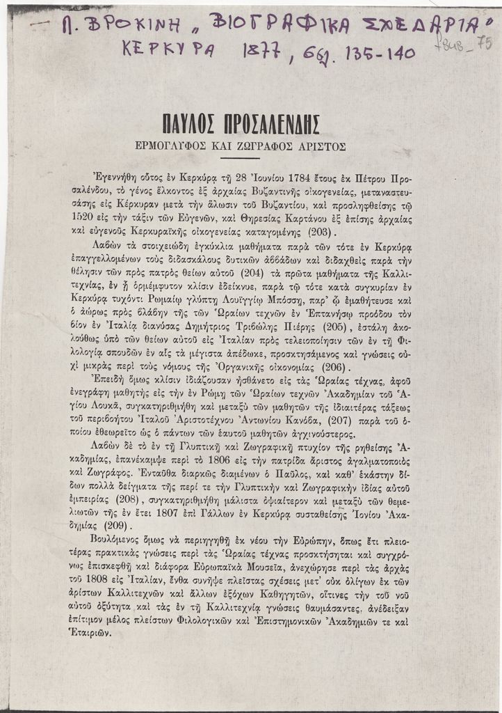 Βροκίνης Π., "Βιογραφικά σχεδάρια", Κέρκυρα, 1877