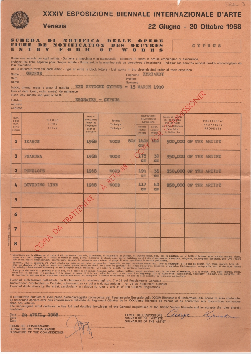 Spiteris Tonis (1910 - 1986) ; Giorgos Skoteinos (1937 - 2022) ; Γιώργος Κυριάκου (1940) ; Andreas Chrysochos (1929) ; Votsis Stelios (1922 - 2012) ; Joachim Costas (1936) ; Χριστόφορος Σάββα (1924 - 1966)
