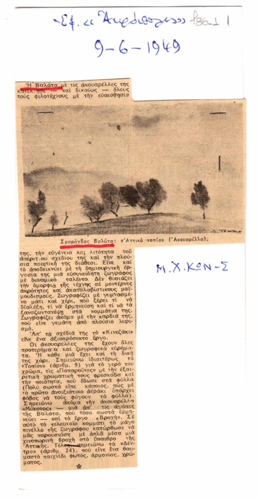 Chatzidakis Manolis (1909 - 1998) ; Konstantopoulos Michail (20th century) ; Eleni Vakalo (1921 - 2001) ; Giofyllis Fotos (1887 - 1981) ; Maroudis Giorgos (20th century) ; Lountemis Menelaos (1912 - 1977) ; Kallonas Dimitrios (1907 - 1965) ; Κώστας Θεοφάνους ; Nikolinakos Michalis (1923 - 1994) ; Κώστας Σούκας ; Στρατής Ευστρατιάδης ; Χρήστος Λεβάντας (1904 - 1975) ; Στάθης Μπάτης ; Μανώλης Ρούνης ; Πέτρος Πικρός ; Δημήτρης Μίτιας ; Κύρος Κοψίνης ; Στάθης Σπηλιωτόπουλος ; Κώστας Οικονομίδης ; Ειρήνη Καλκάνη ; Σ. Σαραντάκος ; Γ. Δαμόρης ; Γιάννης Κουρτέσης