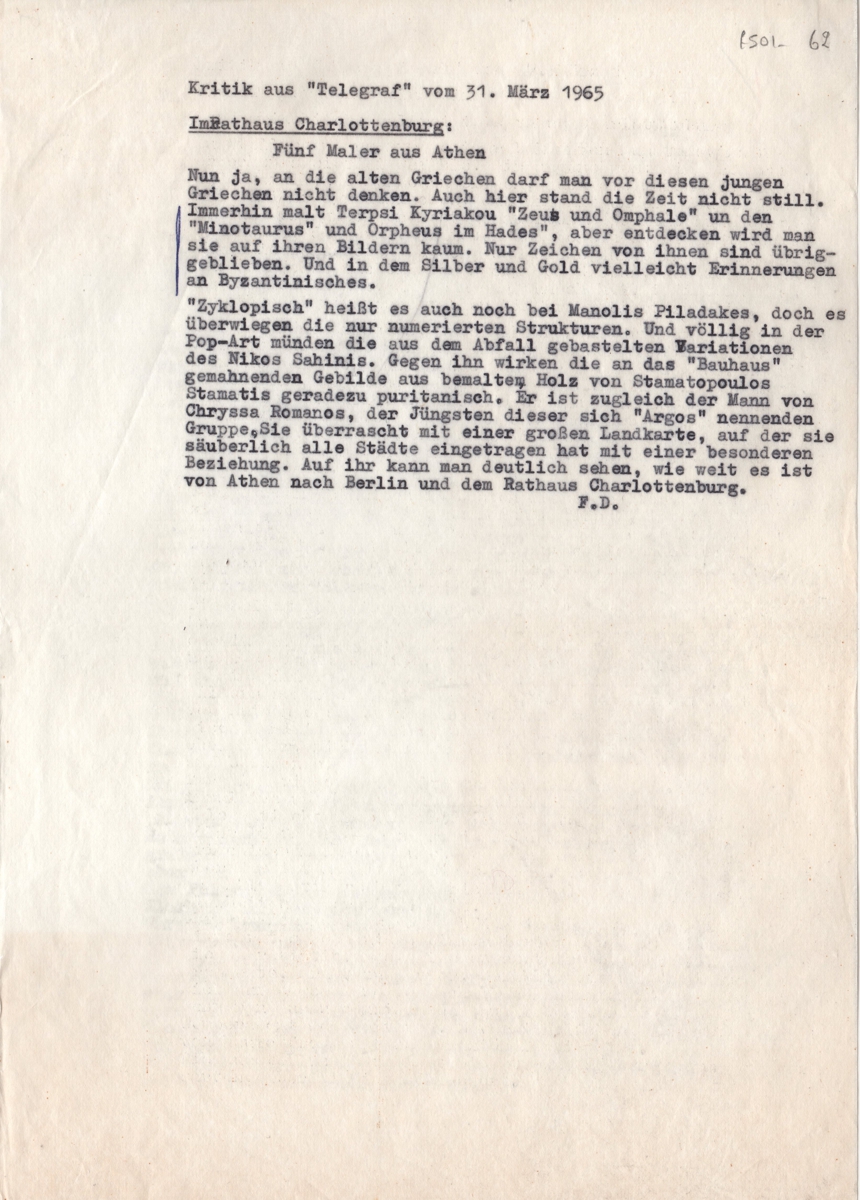 Spiteri-Veropoulou Ioanna (1920 - 2000) ; Andreadi Efi (20th century) ; Mavrommatis Emmanouil (1935) ; Touyas Giorgos (1922 - 1994) ; Sorogas Sotiris (1936) ; Diochanti (1945) ; Μαργαρίτα Λυμπεράκη ; Michalis Katzourakis ; Argyriou Alexandros (1921 - 2009) ; Zongolopoulou Eleni (1909 - 1993) ; Sachinis Nikos (1924 - 1989) ; Simossi Gabriela (1926 - 1999) ; Constantinou Dimitris (1924 - 2010) ; Zouni Opy (1941 - 2008) ; Romanos Chryssa (1931 - 2006) ; (Panagopoulos) Daniel (1924 - 2008) ; Aperghis Achilleas (1909 - 1986) ; Koulentianos Kostas (1918 - 1995) ; Gaitis Yannis (1923 - 1984) ; Georgousopoulos Kostas (1937 - 2024) ; Kalas Nikolas (1907 - 1988) ; Mytaras Dimitris (1934 - 2017) ; Valavanidis Giannis (1939 - 2017) ; Xagoraris Pandelis (1929 - 2000) ; Dekoulakos Ilias (1929 - 1998) ; Karas Christos (1930 - 2023) ; Vernadaki Eleni (1933) ; Takis (Vassilakis Panayiotis) (1925 - 2019) ; Σάββας Κονταράτος ; Manoledaki-Lazaridi Ioanna (1935) ; Philolaos (Tloupas) (1923 - 2010) ; Gravalos Panayiotis (1933 - 2015) ; Droungas Achilleas (1940) ; Iliadis Kostas (1903 - 1991) ; Kanagini Niki (1933 - 2008) ; Kanakakis Lefteris (1934 - 1985) ; Karachalios Kostas (1923 - 2007) ; Kessanlis Nikos (1930 - 2004) ; Kokkinides Demosthenes (1929 - 2020) ; Kontos Dimitris (1931 - 1996) ; Aris Konstantinidis (1913 - 1993) ; Eirini Apergi (1921 - 1994) ; Lazogkas Giorgos (1945 - 2022) ; Logothetis Stathis (1925 - 1997) ; Loucopoulos, Clearchos (1906 - 1995) ; Molfesis Iasson (1925 - 2009) ; Κώστας Αξελός (1924 - 2010) ; Bouteas Yannis (1941 - 2026) ; Nikolaidis Giorgos (1924 - 2001) ; Davou Bia (1932 - 1996) ; Νίκος Φωκάς (1927 - 2021) ; Ρένα Παπασπύρου-Βαρδάκα (1938) ; Pastra Nausica (1921 - 2011) ; Φίλιππος Ηλιού (1931 - 2004) ; Νίκος Γ. Σβορώνος (1911 - 1989) ; Νίκος Χατζηνικολάου, ιστορικός (1938) ; Λίλα Μαραγκού (1938) ; Τίτος Πατρίκιος (1928) ; Χ. Κληρίδη ; Θ. Ρετζής