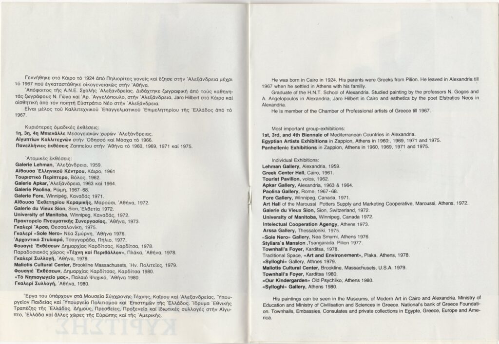 Kokkotaki Dimitra ; Ramfou Maria (1929 - 1986) ; Kyritsis Apostolos (1924 - 2022) ; Baharian Asadour (1924 - 1990) ; Αντώνης-Αλέξανδρος Νίνος ; Άλκηστις Γάσπαρη