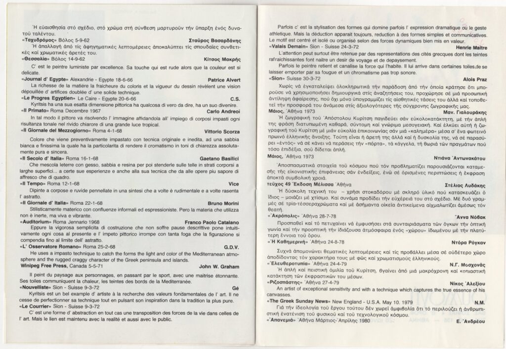 Stathopoulou Eleni (1914 - 2016) ; Engonopoulos Nikos (1907 - 1985) ; Vassiliou Spyros (1902 - 1985) ; Marthas Takis (1905 - 1965) ; Eleni Vakalo (1921 - 2001) ; Zongolopoulou Eleni (1909 - 1993) ; Fassianos Alekos (1935 - 2022) ; Migadis Yannis (1926 - 2017) ; Tsoclis Costas (1930) ; Γιώργος Κυριάκου (1940) ; Arlioti Lili (1908 - 1979) ; Kontopoulos Alekos (1904 - 1975) ; Vasilis Vasiliadis (1927 - 1991) ; Sperantzas Vassilis (1938) ; Κύριλλος Βενιάδης (1936 - 1995) ; Βασίλης Κυπραίος (1936 - 2021) ; Gravalos Panayiotis (1933 - 2015) ; Τζένη Δρόσου (1928) ; Ελένη Ζέρβα (1917 - 1993) ; Άλκης Κανακάκης ; Kaniaris Vlassis (1928 - 2011) ; Kyriaki-Zisopoulou Sapfo (1928) ; Kyritsis Apostolos (1924 - 2022) ; Baharian Asadour (1924 - 1990) ; Maltezos Yannis (1915 - 1987) ; Mytara Charikleia (1935) ; Prekas Paris (1926 - 1999) ; Svoronos Yannis (1919 - 1987) ; Γιάννης Σκουρογιάννης ; Χρυσούλα Ρωξάνη ; Σίμων Καράς ; Γιάννης Κοντός ; Απόστολος Σαχίνης ; Αλίκη Βενιέρη-Σκουλικίδη (1934) ; Τζέννυ Παπαδάκη-Μελισσηνού ; Λάζαρος Ουσταπασίδης