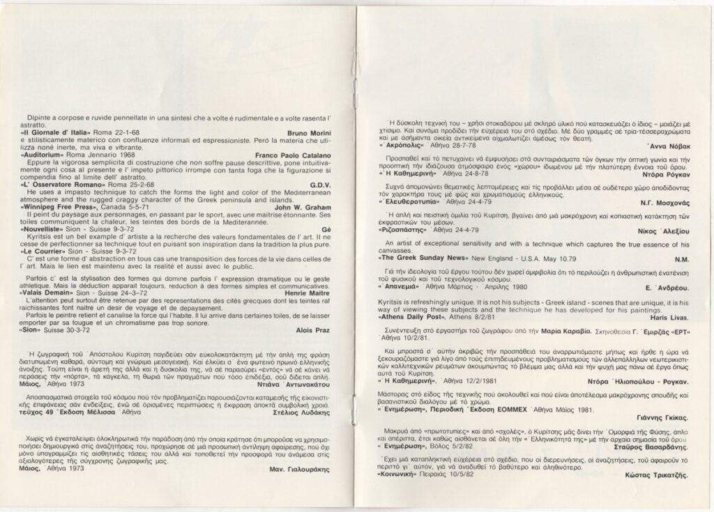 Stathopoulou Eleni (1914 - 2016) ; Engonopoulos Nikos (1907 - 1985) ; Vassiliou Spyros (1902 - 1985) ; Marthas Takis (1905 - 1965) ; Eleni Vakalo (1921 - 2001) ; Zongolopoulou Eleni (1909 - 1993) ; Fassianos Alekos (1935 - 2022) ; Migadis Yannis (1926 - 2017) ; Tsoclis Costas (1930) ; Γιώργος Κυριάκου (1940) ; Arlioti Lili (1908 - 1979) ; Kontopoulos Alekos (1904 - 1975) ; Vasilis Vasiliadis (1927 - 1991) ; Sperantzas Vassilis (1938) ; Κύριλλος Βενιάδης (1936 - 1995) ; Βασίλης Κυπραίος (1936 - 2021) ; Gravalos Panayiotis (1933 - 2015) ; Τζένη Δρόσου (1928) ; Ελένη Ζέρβα (1917 - 1993) ; Άλκης Κανακάκης ; Kaniaris Vlassis (1928 - 2011) ; Kyriaki-Zisopoulou Sapfo (1928) ; Kyritsis Apostolos (1924 - 2022) ; Baharian Asadour (1924 - 1990) ; Maltezos Yannis (1915 - 1987) ; Mytara Charikleia (1935) ; Prekas Paris (1926 - 1999) ; Svoronos Yannis (1919 - 1987) ; Γιάννης Σκουρογιάννης ; Χρυσούλα Ρωξάνη ; Σίμων Καράς ; Γιάννης Κοντός ; Απόστολος Σαχίνης ; Αλίκη Βενιέρη-Σκουλικίδη (1934) ; Τζέννυ Παπαδάκη-Μελισσηνού ; Λάζαρος Ουσταπασίδης