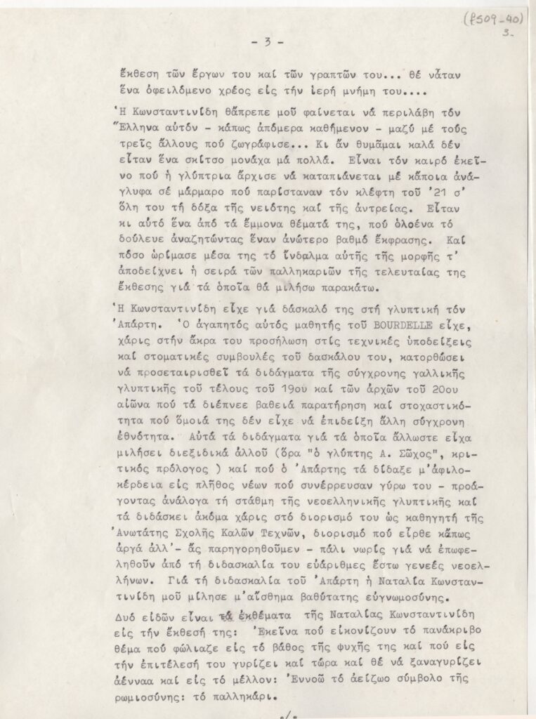 Anna Bekiari (1870 - 1960) ; Spiteri-Veropoulou Ioanna (1920 - 2000) ; Eleni Vakalo (1921 - 2001) ; Efthymiadi-Menegaki Frosso ; Mylonas Alex (1923 - 2016) ; Natalia Mela-Konstantinidi (1923 - 2019)