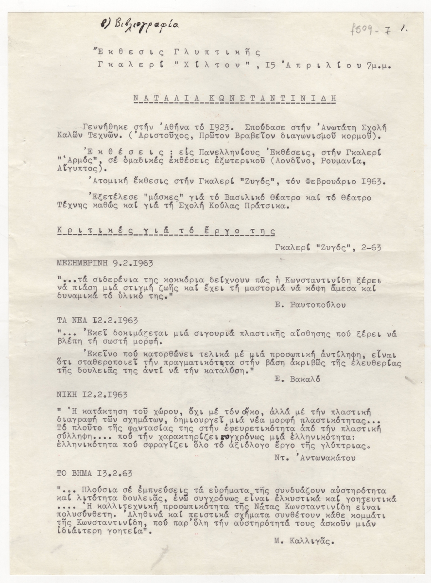 Spiteri-Veropoulou Ioanna (1920 - 2000) ; Michalis Tompros (1889 - 1974) ; Christos Kapralos (1909 - 1993) ; Sklavos Yerassimos (1927 - 1967) ; Kotzamani Maria (1938 - 2012) ; Zongopoulos Giorgos (1903 - 2004) ; Efthymiadi-Menegaki Frosso ; Achilleas Aperghis (1909 - 1986) ; Koulentianos Kostas (1918 - 1995) ; Theodoros (Papadimitriou) (1931 - 2018) ; Pappas Giannis (1913 - 2005) ; Δημήτρης Καλαμάρας (1924 - 1997) ; Natalia Mela-Konstantinidi (1923 - 2019)