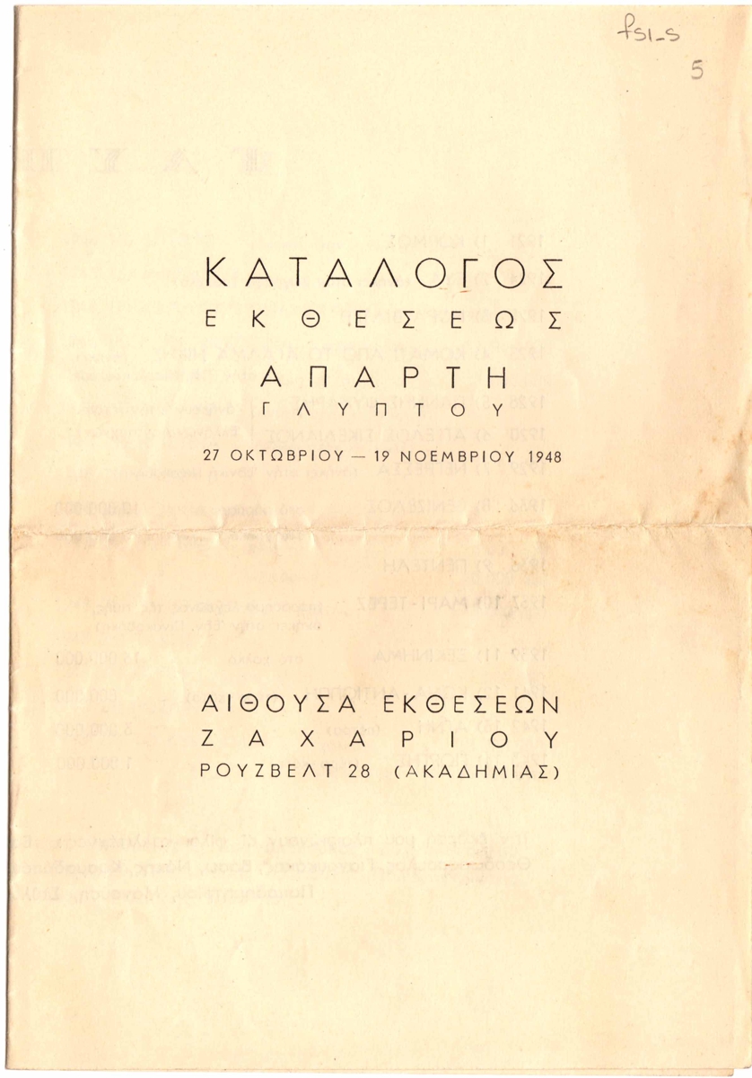 Spiteri-Veropoulou Ioanna (1920 - 2000) ; Moralis Giannis (1916 - 2009) ; Grammatikopoulos Konstantinos (1928) ; Zervou Christina (1937 - 1988) ; Mytaras Dimitris (1934 - 2017) ; Papadimitriou Theodoros (1931 - 2018) ; Karras Christos (1930 - 2023) ; Victor Vasarely ; Droungas Achilles (1940) ; Τρύφων Καζάκος (1895 - 1966)