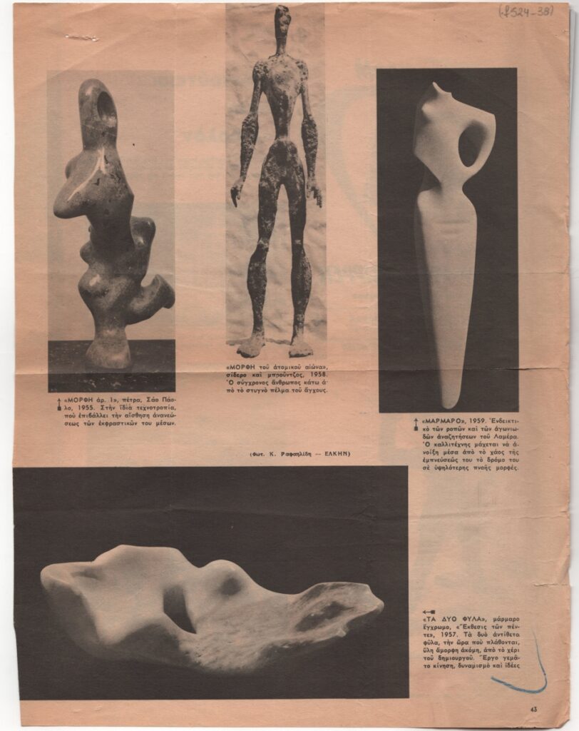 Spiteri-Veropoulou Ioanna (1920 - 2000) ; Perdikidis Dimitris (1922 - 1989) ; Τέρψη Κυριακού (1916 - 1993) ; Phidias (5th century BC) ; Sklavos Yerassimos (1927 - 1967) ; Lazaros Lameras (1913 - 1998) ; Exarchopoulos Thanasis (1927 - 2021) ; Ελένη Ζέρβα (1917 - 1993) ; Μανώλης Πιλαδάκης (1927)