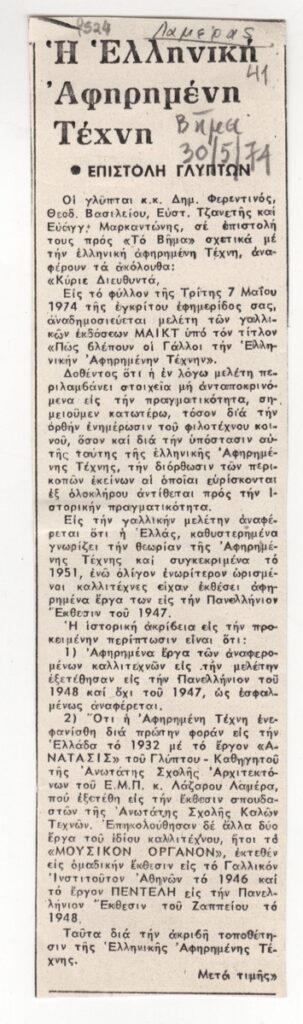 Spiteri-Veropoulou Ioanna (1920 - 2000) ; Τέρψη Κυριακού (1916 - 1993) ; Mylonas Pavlos (1915 - 2005) ; Lameras Lazaros (1913 - 1998) ; Ελένη Παγκάλου ; Polychroniadi Selest (1904 - 1985) ; Βασίλειος Σπηλιωτόπουλος ; Santorinaios Nikolaos (1889 - 1966)