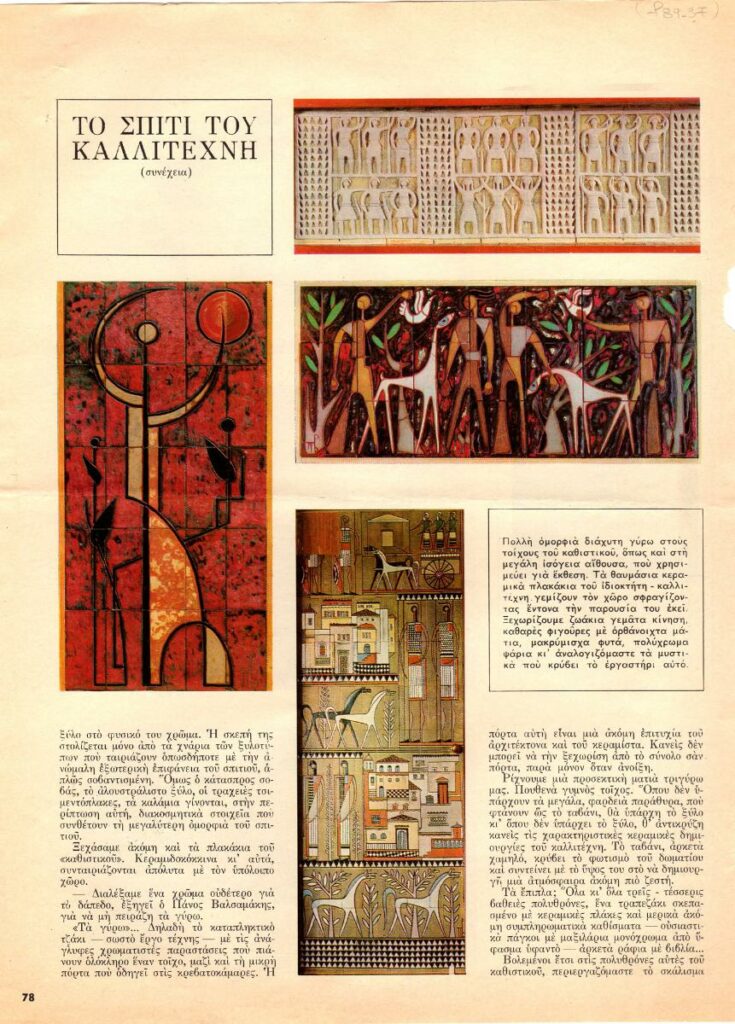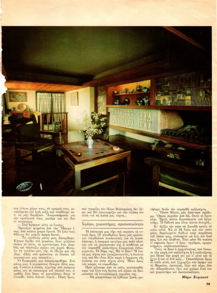 A clipping from the magazine “Gynaika”, featuring an article on Panos Valsamakis.