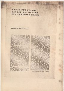A clipping from the newspaper “Les Lettres Françaises”, featuring an article on Achilleas Apergis and his work.