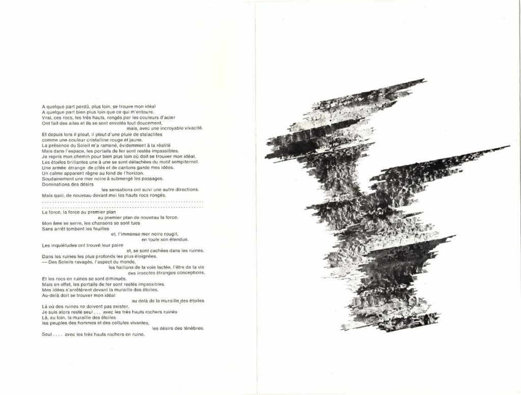 Pamphlet for an exhibition by Achilleas Apergis. It includes a brief biographical note, a poem by the artist about his work and a text by Denys Chevalier.