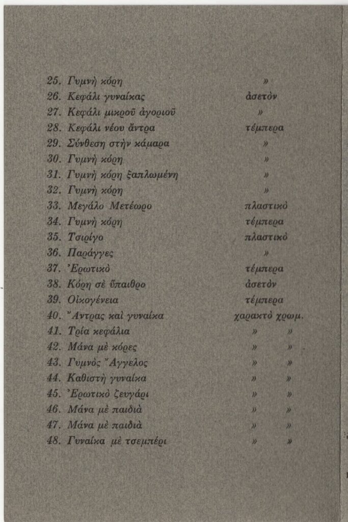 List of works from the solo painting exhibition by Giorgos Sikeliotis at the “Nees Morfes’ Gallery in Athens.