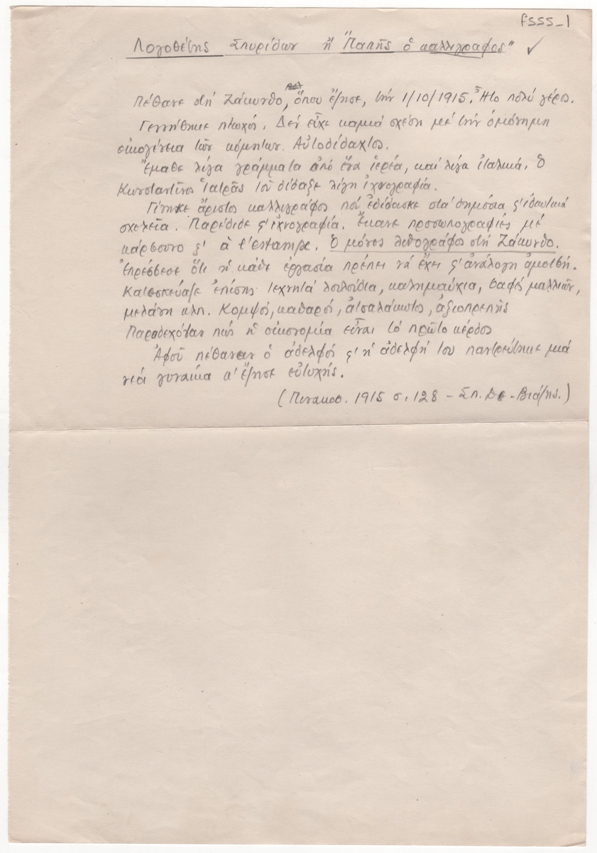 Spiteris Tonis (1910 - 1986) ; Kapralos Christos (1909 - 1993) ; Mourelos Georgios (1912 - 1994)