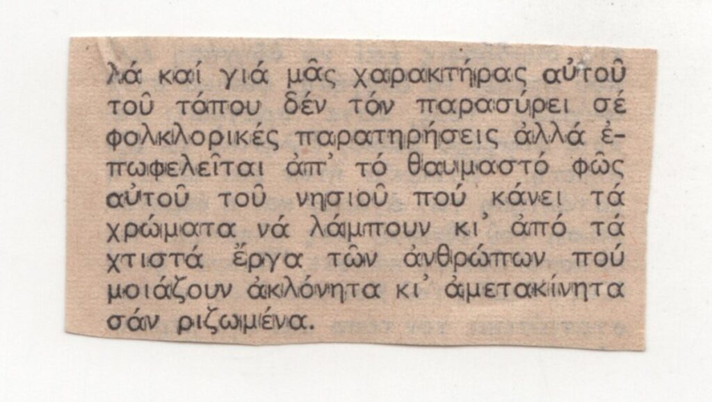 A clipping from the newspaper “To Vima”, dated December 14, 1974, featuring a review of the solo exhibition by Giorgos Sikeliotis in Athens.