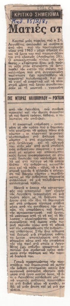 Nikos Engonopoulos (1907 - 1985) ; Semertzidis Valias (1911 - 1983) ; Spiteri-Veropoulou Ioanna (1920 - 2000) ; Vassiliou Spyros (1902 - 1985) ; Hatzikyriakos-Ghika Nikos (1906 - 1994) ; Raftopoulou Bella (1902 - 1992) ; Sikeliotis Giorgos (1917 - 1984) ; Iliopoulou-Rogan Dora (20th century) ; Gaitis Yannis (1923 - 1984) ; Mytaras Dimitris (1934 - 2017) ; Tetsis Panagiotis (1925 - 2016) ; Panayiotis Gravalos (1933 - 2015) ; Konstantinos Grammatopoulos (1916 - 2003) ; Varlamos Giorgos (1922 - 2013) ; Katsoulidis Takis (1933) ; Μάριος Λοβέρδος ; Malamos Kostas (1913) ; Manousakis Giorgos (1914 - 2003) ; Georgios Mavroidis (1912 - 2003) ; Malamou-Mitsea Ioanna (1913 - 2004) ; Preka-Stefanatou Meropi (1934 - 2025) ; Prekas Paris (1926 - 1999) ; Ευάγγελος Τερζόπουλος ; Iris Drakouli (1929)