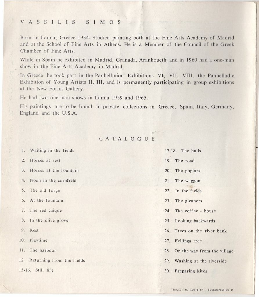 Anna Koraki (1944) ; Zervos Christian (1889 - 1970) ; Πάνος-Νικολής Τζελέπης ; Christina Zervou (1937 - 1988) ; Parmakelis Yannis (1932) ; Apergis Antonis (1938 - 2018) ; Πέτρος Ζουμπουλάκης (1937) ; Θεόδωρος Μανωλίδης (1940) ; Armakolas Dimitris (1939 - 2009) ; Papadakis Yannis (1934) ; Βασίλης Σίμος ; Stathopoulos Giorgos (1944) ; Yvonne Zervos-Marrion ; Mia Perivola (1942) ; Vassiloglou-Alevropoulou Marina (1945) ; Katapodis Spyros (1933 - 1998) ; Δημήτρης Γρατσίας ; Κώστας Παπαδόπουλος ; Ζωή Ουντινόττι ; Γιώργος Κουτσογιάννης ; Μαρία Κυριακίδη ; Βιργινία Χιωτάκη ; Άρης Γεωργακόπουλος