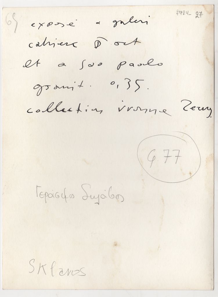 Spiteri-Veropoulou Ioanna (1920 - 2000) ; Vassiliou Spyros (1902 - 1985) ; Michalis Tompros (1889 - 1974) ; Rene Deroudille ; Τέρψη Κυριακού (1916 - 1993) ; Tsoclis Costas (1930) ; Sklavos Yerassimos (1927 - 1967) ; Mylonas Alex (1923 - 2016) ; Gaitis Yannis (1923 - 1984) ; Karas Christos (1930 - 2023) ; Francis Bacon (1909 - 1992) ; Villon Jacques (1875 - 1963) ; Parandinos Nikolaos (1910 - 1991) ; Alberto Burri (1915 - 1995) ; Μανώλης Πιλαδάκης (1927) ; Claude Santa