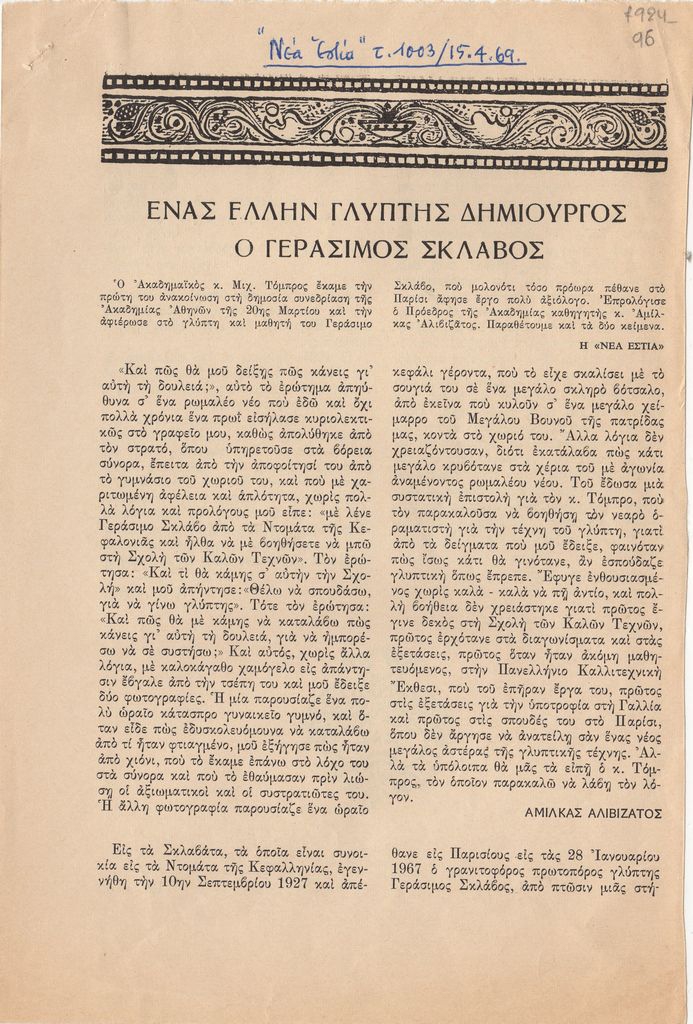 Sklavos Yerassimos (1927 - 1967) - Artist