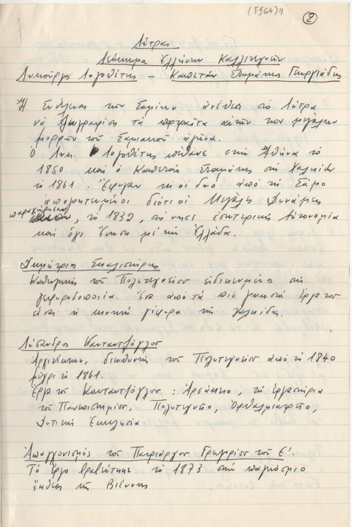 Vyzantios Periclis (1893 - 1972) ; Ioannidis Evangelos (1868 - 1942) ; Lytras Nikiforos (1832 - 1904)