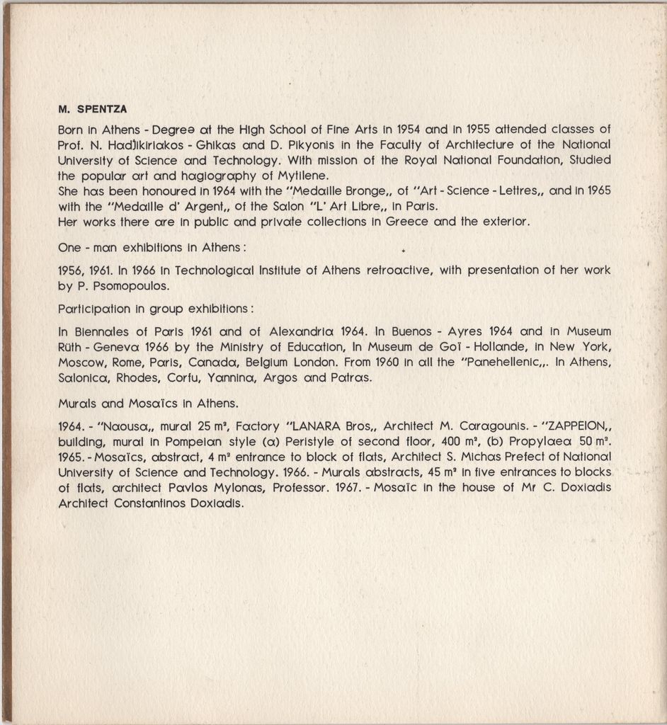 Maria Spentza (1925 - 2011) - Artist