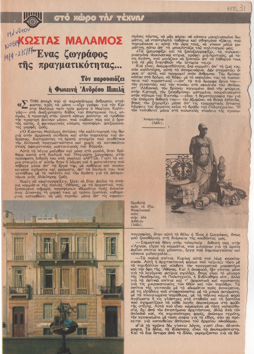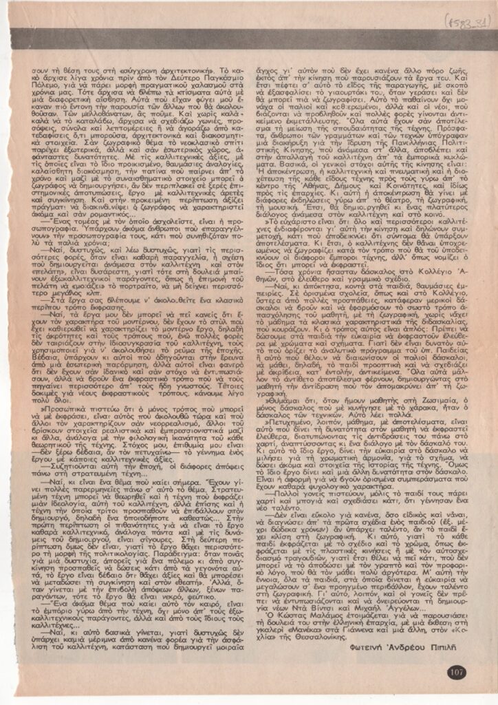 Engonopoulos Nikos (1907 - 1985) ; Semertzidis Valias (1911 - 1983) ; Spiteri-Veropoulou Ioanna (1920 - 2000) ; Vassiliou Spyros (1902 - 1985) ; Hatzikyriakos-Ghika Nikos (1906 - 1994) ; Raftopoulou Bella (1902 - 1992) ; Sikeliotis Giorgos (1917 - 1984) ; Iliopoulou-Rogan Dora (20th century) ; Gaitis Yannis (1923 - 1984) ; Mytaras Dimitris (1934 - 2017) ; Tetsis Panagiotis (1925 - 2016) ; Gravalos Panayiotis (1933 - 2015) ; Grammatopoulos Konstantinos (1916 - 2003) ; Varlamos Giorgos (1922 - 2013) ; Katsoulidis Takis (1933) ; Μάριος Λοβέρδος ; Malamos Kostas (1913) ; Manousakis Giorgos (1914 - 2003) ; Mavroidis Georgios (1912 - 2003) ; Malamou-Mitsea Ioanna (1913 - 2004) ; Preka-Stefanatou Meropi (1934 - 2025) ; Prekas Paris (1926 - 1999) ; Ευάγγελος Τερζόπουλος ; Drakouli Iris (1929)