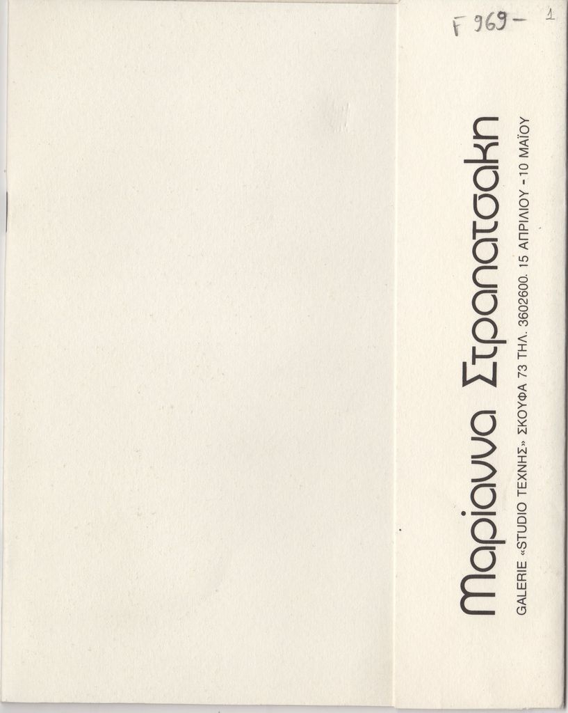 Moralis Yannis (1916 - 2009) ; Ritsos Giannis (1909 - 1990) ; Tsaras Kostas (1928 - 1986) ; Άρης Γαρουφαλής ; Δανάη Καρά ; Stravinsky Igor (1882 - 1971) ; Μαρίκα Παπαϊωάννου ; Κική Μορφονιού (1936) ; Γιώργος Κουρουπός ; Carlo Carosso (1953 - 2007) ; Περικλής Κούκος ; Γ. Βατικιώτης ; Νίκος Γκίνος ; Νίκος Χριστοδούλου (1959) ; Αλίκη Καγιαλόγλου