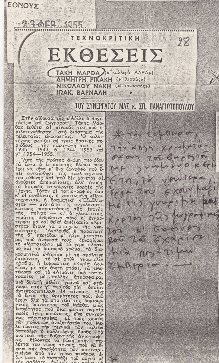 Spiteris Tonis (1910 - 1986) ; Michalis Tompros (1889 - 1974) ; Michel Conil-Lacoste ; Prokopiou Angelos G. (1909 - 1967) ; Moulin Raoul-Jean (1934 - 2014) ; Chatzidakis Manolis (1909 - 1998) ; Hoctin, Luce (1916 - 2015) ; Eleni Vakalo (1921 - 2001) ; Σπύρος Παναγιωτόπουλος (1894 - 1987) ; Nestoras Matsas (1935 - 2012) ; Zongopoulos Giorgos (1903 - 2004) ; Mylonas Alex (1923 - 2016) ; Έλλη Κ. Πολίτη ; Elgar Frank (1899 - 1978) ; Charles Sriber