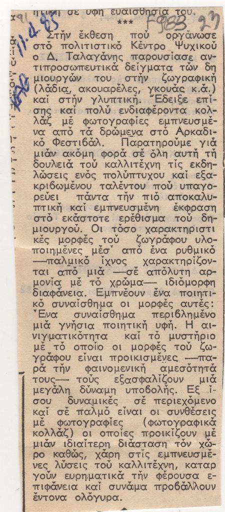Εφημερίδα "Η Καθημερινή", 11/04/1985