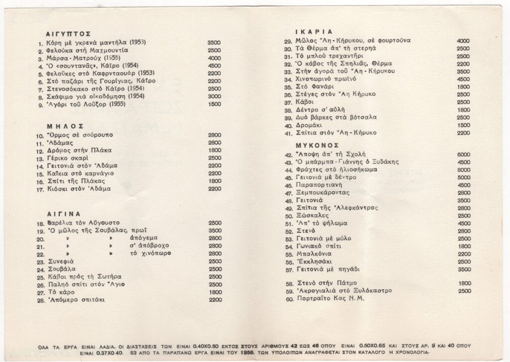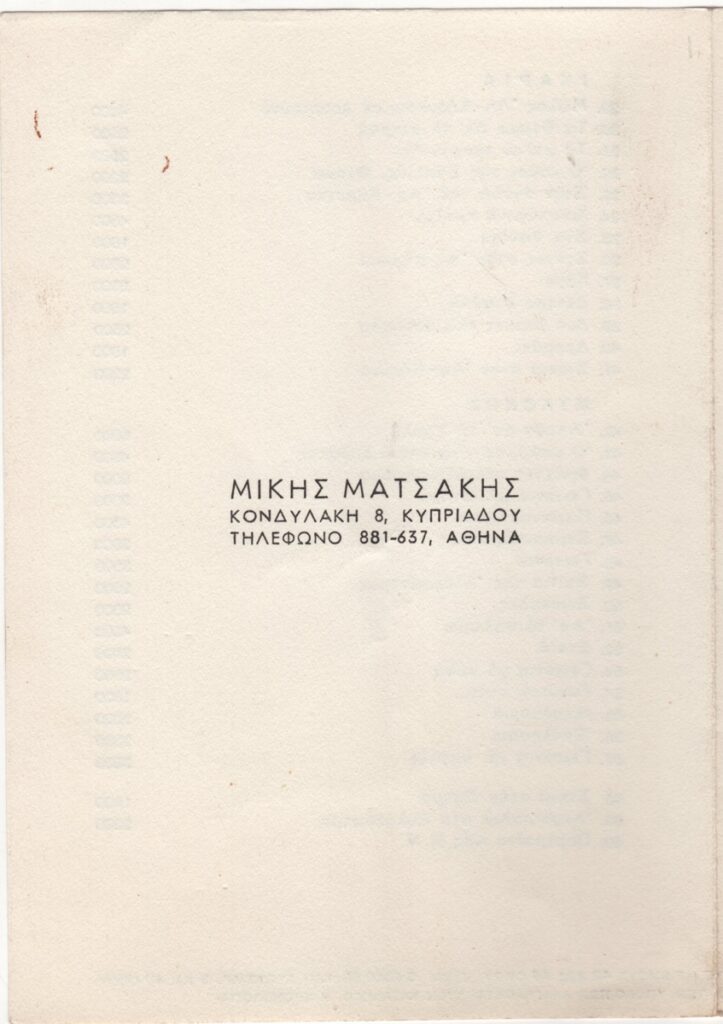 Sotiris Sorogas (1936) ; Σώτος Παπασπυρόπουλος ; Georgiadis, Nicholas (1925 - 2001) ; Νίκος Ζερβός ; Palaiologos Theologou (1930 - 2017) ; Aris Konstantinidis (1913 - 1993) ; Matsakis, Micky (1900 - 1978) ; Ναυσικά Γεωργιάδη ; Χαράλαμπος Κορωναίος ; Νίκος Καζές