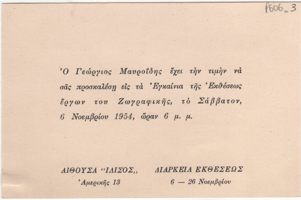 Nikos Engonopoulos (1907 - 1985) ; Semertzidis Valias (1911 - 1983) ; Spiteri-Veropoulou Ioanna (1920 - 2000) ; Vassiliou Spyros (1902 - 1985) ; Hatzikyriakos-Ghika Nikos (1906 - 1994) ; Raftopoulou Bella (1902 - 1992) ; Sikeliotis Giorgos (1917 - 1984) ; Iliopoulou-Rogan Dora (20th century) ; Gaitis Yannis (1923 - 1984) ; Mytaras Dimitris (1934 - 2017) ; Tetsis Panagiotis (1925 - 2016) ; Panayiotis Gravalos (1933 - 2015) ; Konstantinos Grammatopoulos (1916 - 2003) ; Varlamos Giorgos (1922 - 2013) ; Katsoulidis Takis (1933) ; Μάριος Λοβέρδος ; Malamos Kostas (1913) ; Manousakis Giorgos (1914 - 2003) ; Georgios Mavroidis (1912 - 2003) ; Malamou-Mitsea Ioanna (1913 - 2004) ; Preka-Stefanatou Meropi (1934 - 2025) ; Prekas Paris (1926 - 1999) ; Ευάγγελος Τερζόπουλος ; Iris Drakouli (1929)