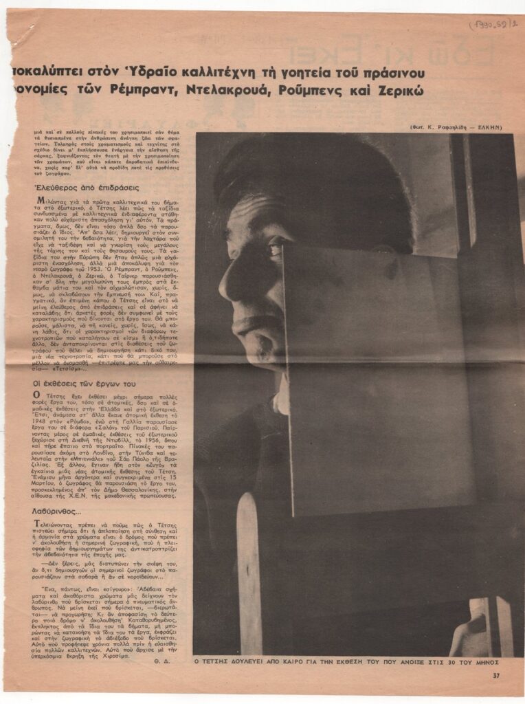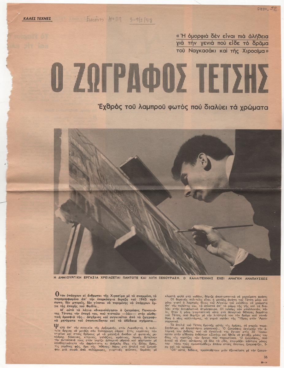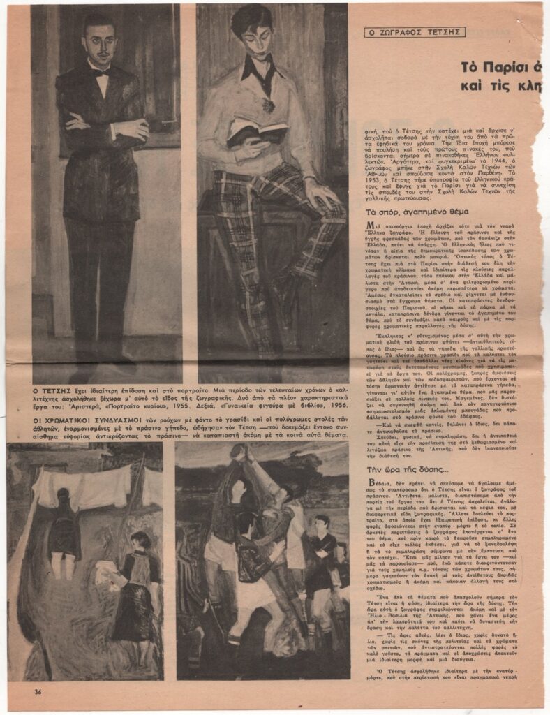 Clipping from the magazine “Eikones”, dated February 3, 1958, featuring an interview with the painter Panagiotis Tetsis.