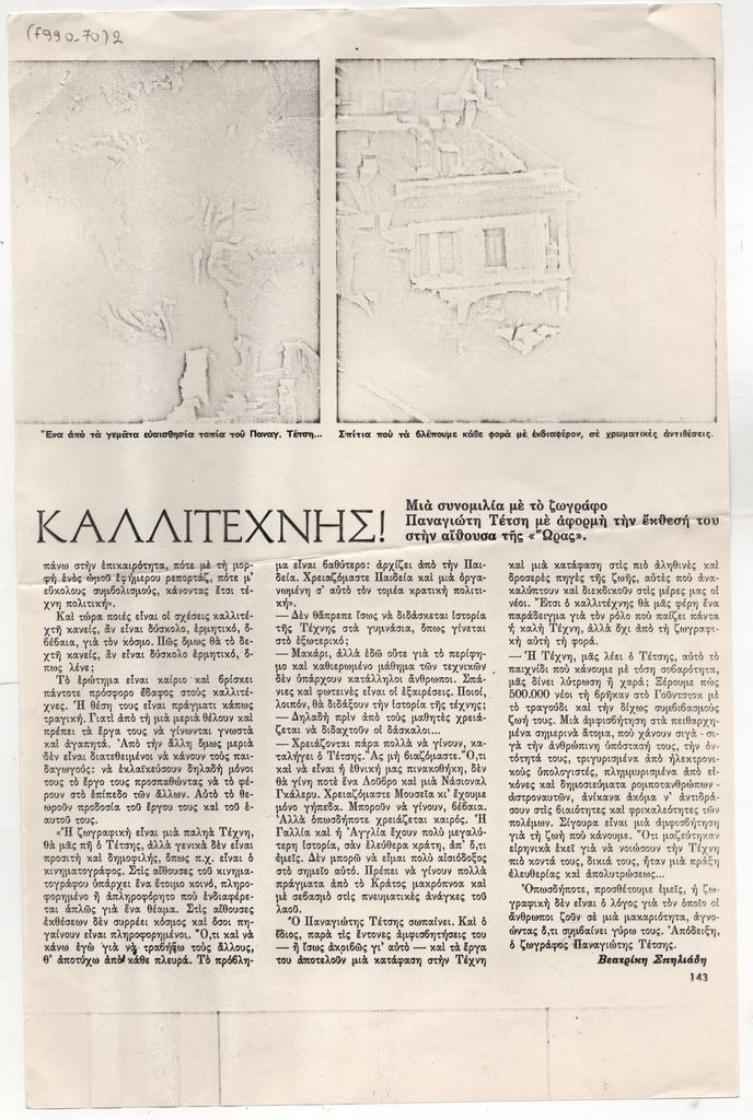 Nikos Engonopoulos (1907 - 1985) ; Semertzidis Valias (1911 - 1983) ; Spiteri-Veropoulou Ioanna (1920 - 2000) ; Vassiliou Spyros (1902 - 1985) ; Hatzikyriakos-Ghika Nikos (1906 - 1994) ; Raftopoulou Bella (1902 - 1992) ; Sikeliotis Giorgos (1917 - 1984) ; Iliopoulou-Rogan Dora (20th century) ; Gaitis Yannis (1923 - 1984) ; Mytaras Dimitris (1934 - 2017) ; Tetsis Panagiotis (1925 - 2016) ; Panayiotis Gravalos (1933 - 2015) ; Konstantinos Grammatopoulos (1916 - 2003) ; Varlamos Giorgos (1922 - 2013) ; Katsoulidis Takis (1933) ; Μάριος Λοβέρδος ; Malamos Kostas (1913) ; Manousakis Giorgos (1914 - 2003) ; Georgios Mavroidis (1912 - 2003) ; Malamou-Mitsea Ioanna (1913 - 2004) ; Preka-Stefanatou Meropi (1934 - 2025) ; Prekas Paris (1926 - 1999) ; Ευάγγελος Τερζόπουλος ; Iris Drakouli (1929)