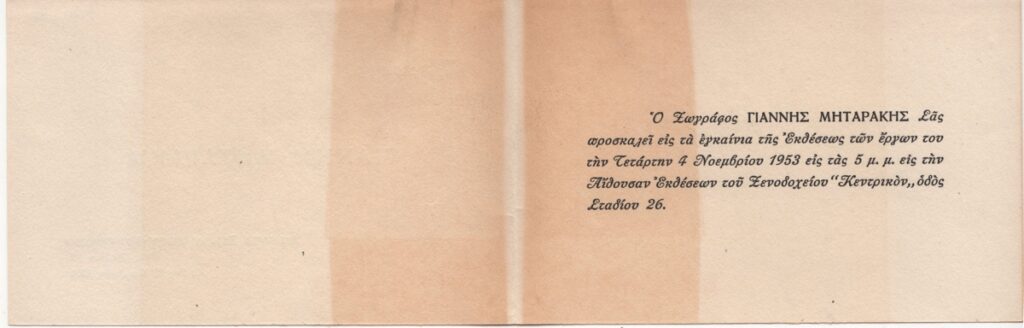 Spiteri-Veropoulou Ioanna (1920 - 2000) ; Vassiliou Spyros (1902 - 1985) ; Orestis Kanellis (1910 - 1979) ; Maggiorou Loukia (1914 - 2008) ; Tassos (Anastasios Alevizos) (1914 - 1985) ; Mitarakis Yannis (1898 - 1963) ; Asteriadis Aghinor (1898 - 1977) ; Sikeliotis Giorgos (1917 - 1984) ; Antonakatou Diana (1922 - 2011) ; Eleftheriadis Takis (1911 - 1987) ; Frantziskakis Errikos (1908 - 1958) ; Sochos Antonios (1888 - 1975) ; Bouzianis Giorgos (1885 - 1959) ; Karantinos Sokratis (1906 - 1979) ; Zachariou Fotis (1909 - 2001) ; Μαρία Αναγνωστοπούλου-Βρανίκα (1890 - 1971) ; Karagatsi Niki (1914 - 1986) ; Papanoutsou Ioulia (1900 - 1973)