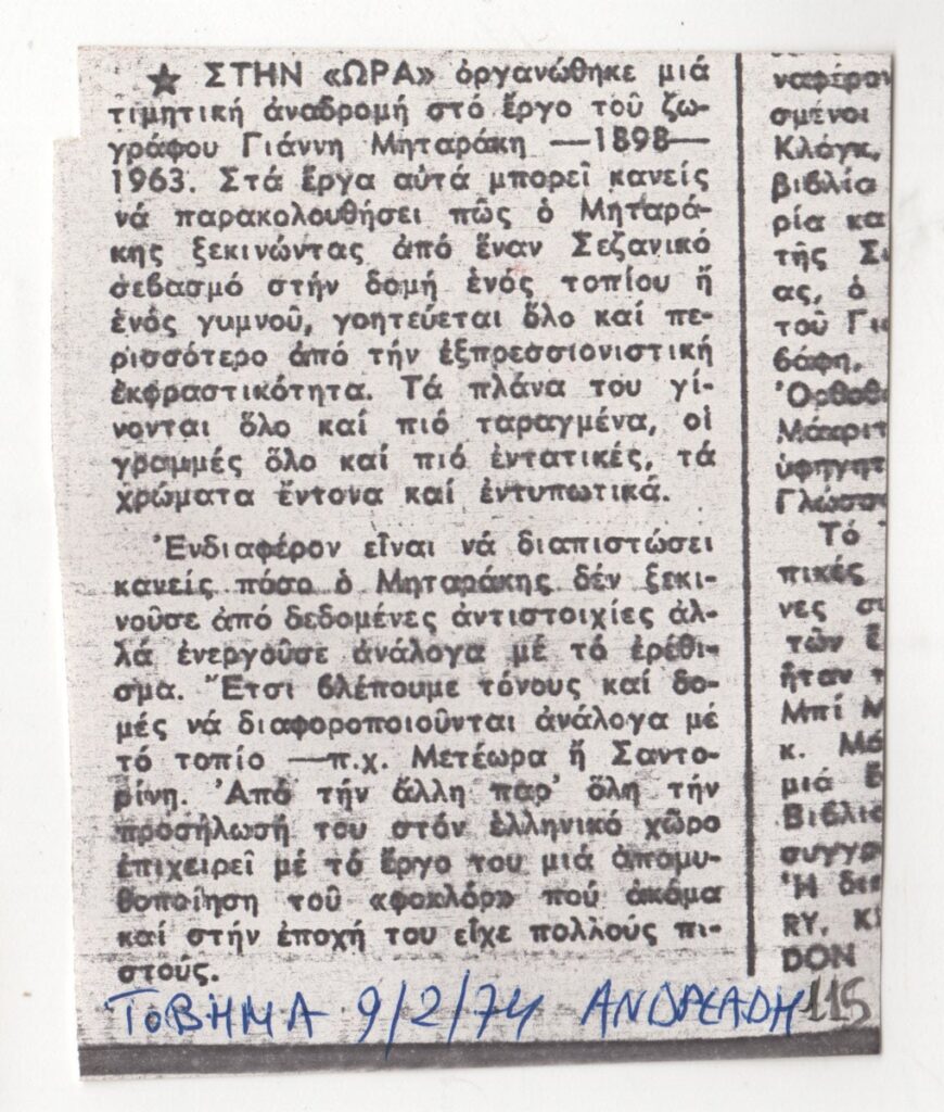 Spiteri-Veropoulou Ioanna (1920 - 2000) ; Andreadi Efi (20th century) ; Touyas Giorgos (1922 - 1994) ; Sotiris Sorogas (1936) ; Diochanti (1945) ; Romanos Chryssa (1931 - 2006) ; Zongopoulos Giorgos (1903 - 2004) ; Achilleas Aperghis (1909 - 1986) ; Xagoraris Pandelis (1929 - 2000) ; Ilias Dekoulakos (1929 - 1998) ; Vernadaki Eleni (1933) ; Niki Kanagini (1933 - 2008) ; Kessanlis Nikos (1930 - 2004) ; Loucopoulos, Clearchos (1906 - 1995) ; Bouteas Yannis (1941 - 2026) ; Bia Davou (1932 - 1996)